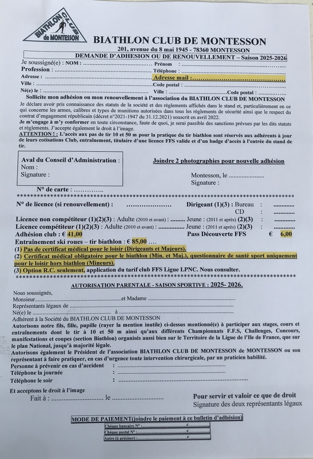 Modèle du certificat médical pour la pratique du biathlon proposé par la F.F.S. : modele_certificat_medical_biathlon 2025-2026.pdf